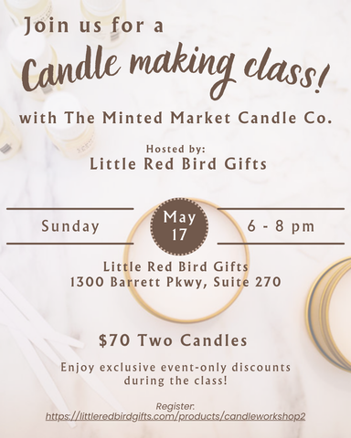 In-Store Events: Candle Making Workshop at Little Red Bird Gifts Join Jen Burklow of The Minted Market and Little Red Bird Gifts for a hands-on can...