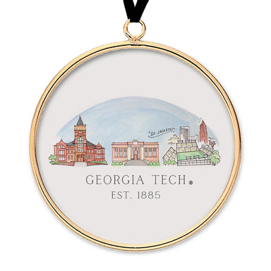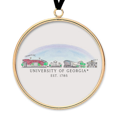 This brass and glass ornament featuring our signature skyline artwork for Auburn is a classic addition to the holiday collection of any fan. This p...
